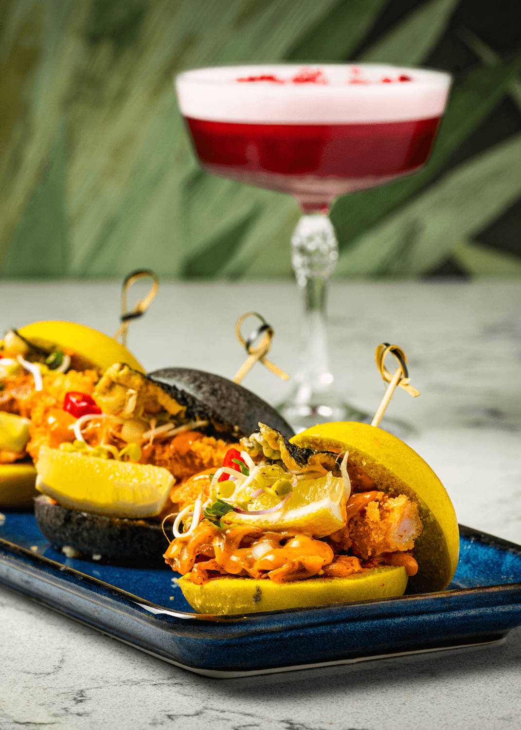 Geniet van een heerlijke proeverij met cava vooraf en 2 verschillende cocktails. Geserveerd met bijpassende gerechten en bites. We sluiten af met een dessert.